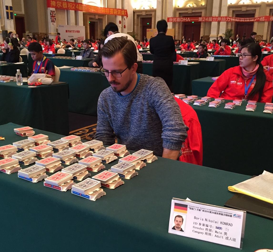 Die 24. Gedächtnis-Weltmeisterschaften fanden von 16. bis 18. Dezember in Chengdu, China, statt. Insgesamt traten 275 Teilnehmer aus über 20 Nationen an, es wurden über 100,000,-- Euro Preisgelder ausgeschüttet. Nachdem im Vorjahr erstmals Schweden die Nationenwertung gewinnen konnte, darf in 2015 wieder das deutsche Team den Titel feiern. Angeführt von Gedächtnistrainer und Vortragsredner Boris Nikolai Konrad traten acht deutsche Gedächtnissportler an und konnten sich am Ende vor den USA und China durchsetzen. Mit über 22,000 Punkten holten die Deutschen dabei so viele Punkte in der Teamwertung wie niemals zuvor eine Mannschaft in der 25-jährigen Geschichte des Sports.